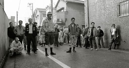 寄せ場のシャッターが開きかけると隙間からわらわらと日雇い労働者が殺到してくる図など、知識として知ってはいても実際に映像として見ると生々しさに圧倒される。
